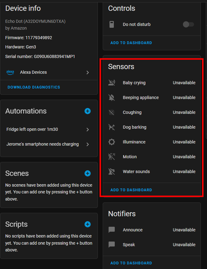 I see a bunch of new sensors on my Echo Dot 3 for instance, most of them unavailable though.