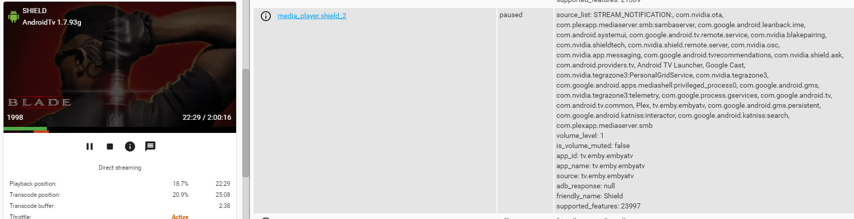 I have an automation that dims lights in my living room when content is playing on my living room nvidia shield, and brightens lights when the state is paused, idle, or standby. This works great in plex. But the device state when using emby is reported as “paused”, even when the app is just opened and continues to stay that way even content is playing in the app. I have a thread on the emby forums, but don’t know much about how the device state is set, why it works in plex, and why it doesn’t in emby. Any tips or links to device state documentation would be appreciated.