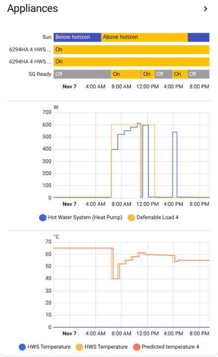 Here is my hot water, I too use a change of setpoint (SG Ready = 65 deg C) when deferrable4 > 0.