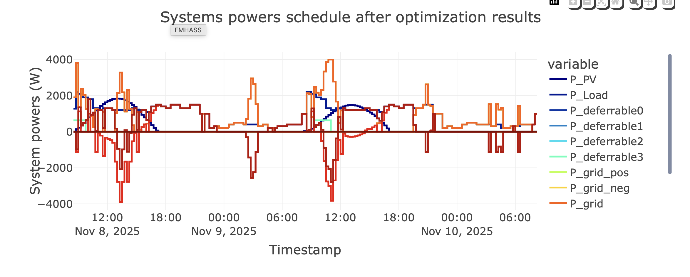 I have a question for the people who use a heatpumpboiler for DHW with the thermal model and rolling window with 5 min MPC runs. Do you see a nice planning with the heatpumpboiler getting warmed up during PV generation, but in the end EMHASS decides to start in the early mornings? I have a 15 kWh battery also. I just wonder why EMHASS deviates from it’s original planning when heading into the evening/night. You don’t expect big changes anymore in the forecasts at night for the next day. If you want to share your experience with this,that would be very helpful. Thank you all