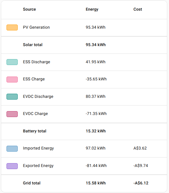 Mixed line and bar charts (rebuilding the core energy graph, but adding the house battery charging state as a line to get a better feeling for this bars):