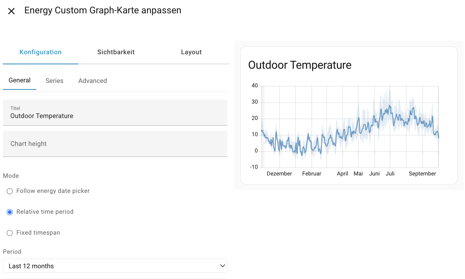 - uses the HA internal Echart instance without requiring additional large charting frameworks