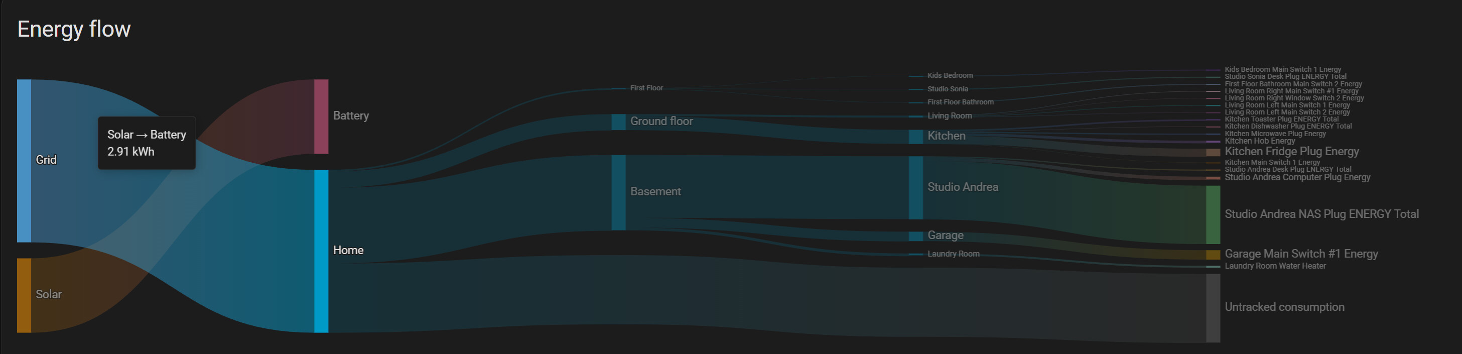 I’ve got some energy monitors in a few separate panels of my home, along with some energy-monitoring smart plugs. The Energy Flow card is overlapping. I’ve tried rearranging the circuit order under the Energy Dashboard settings, renaming the display names for these devices, but it still overlaps. Is there a way to change the order or prevent overlap? It looks extremely silly as-is and I haven’t found a solution.to adjust the ordering of this. The main panel is in the shop, and it branches to a subpanel in the house.