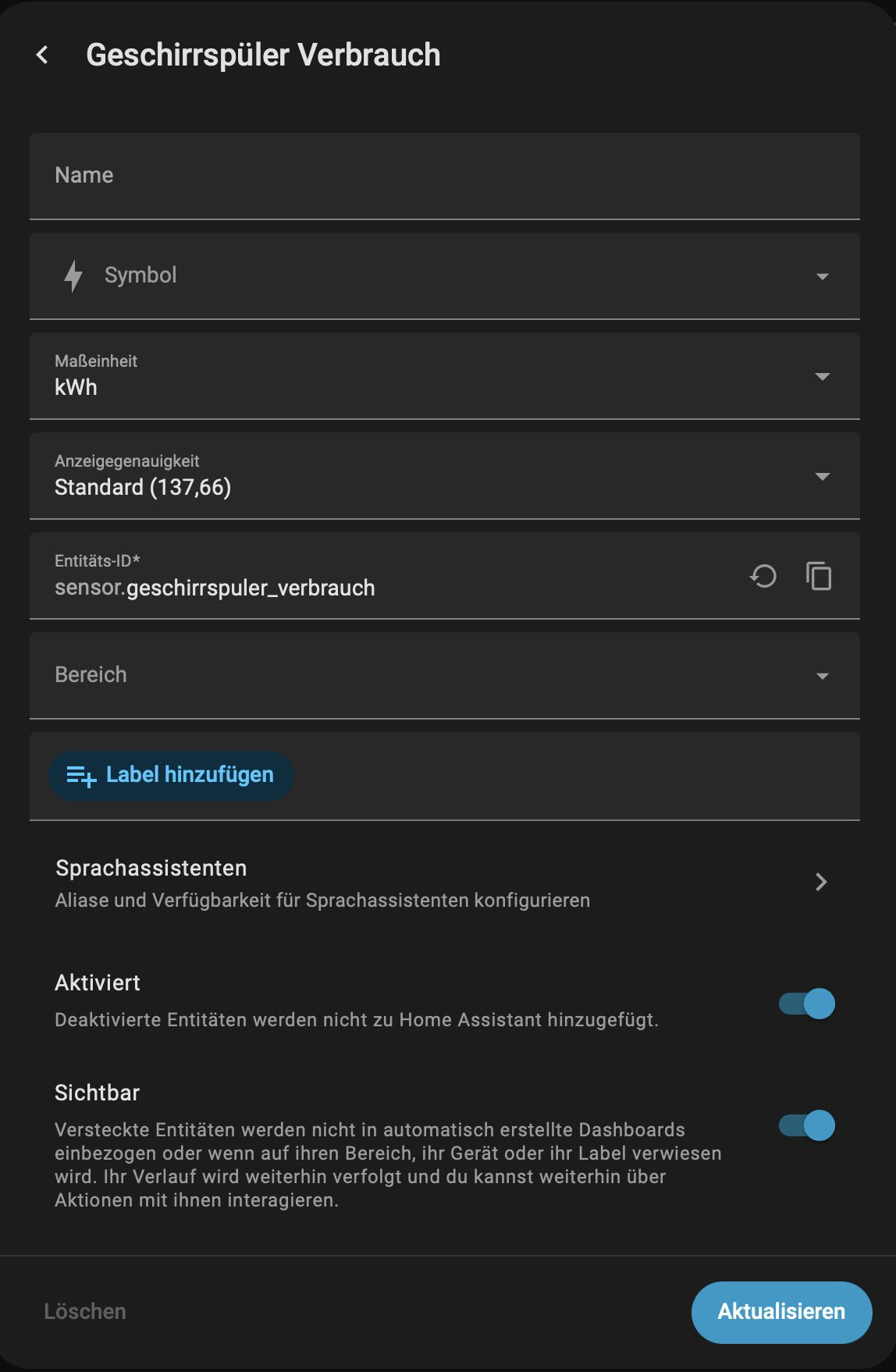 Entity Value/Unit in normal and energy dashboard:
