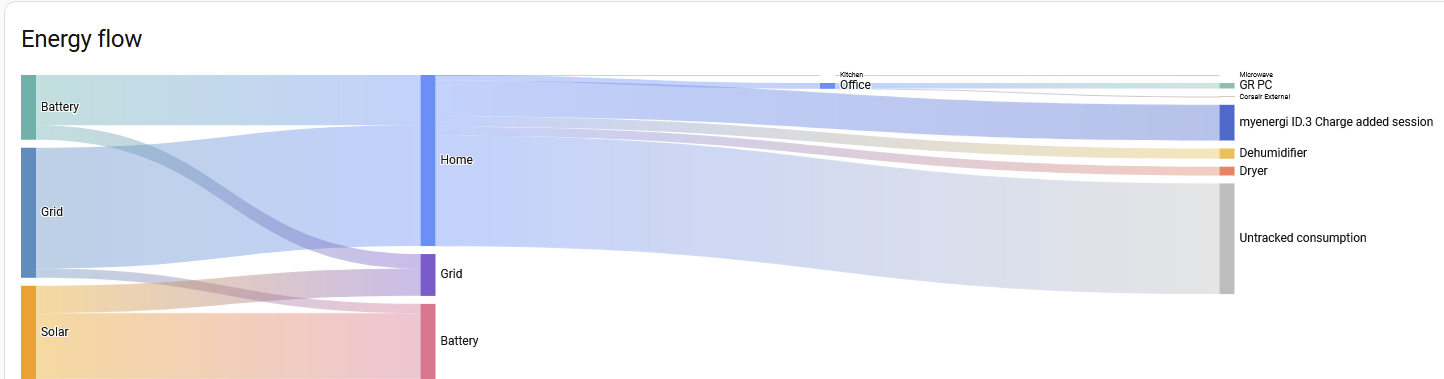 In the energy flow diagram I can see that my “GR PC” is connected to my “Office extension lead” and that it doesn’t double count the two values, it knows that one is the parent of the other.