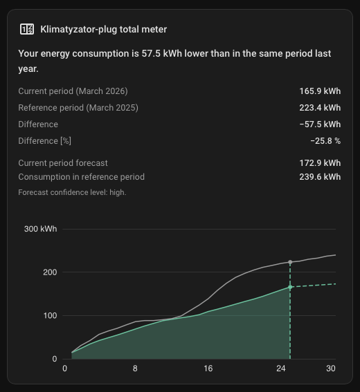 Most energy cards focus on live power or daily usage. Energy Horizon is different—it’s designed specifically for long-term statistics. It helps you visualize how your cumulative energy consumption is trending compared to a historical period (e.g., this year vs. last year).