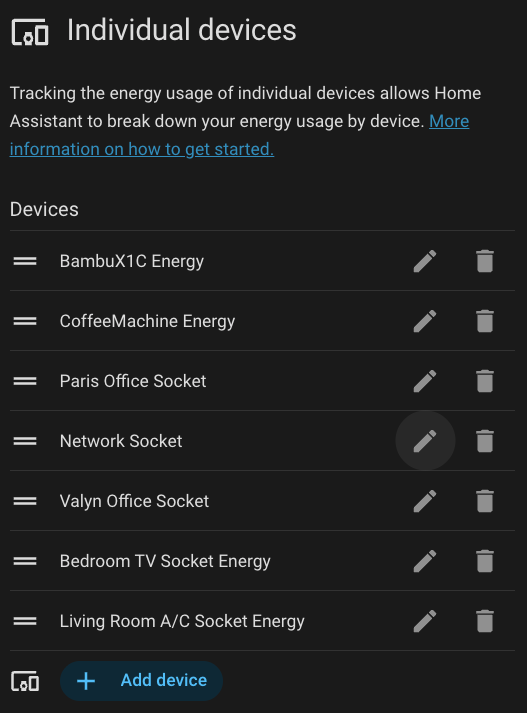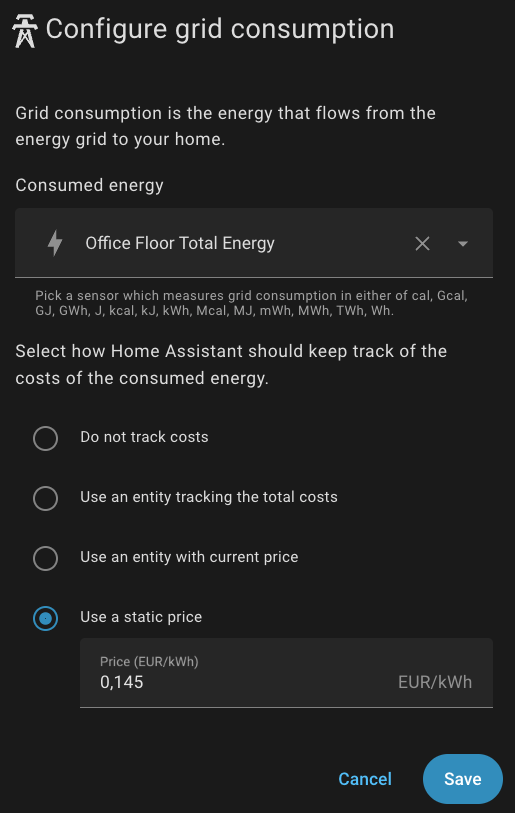 I try to track and monitor individual devices as consumption and have in the Grid calculated the actual cost.