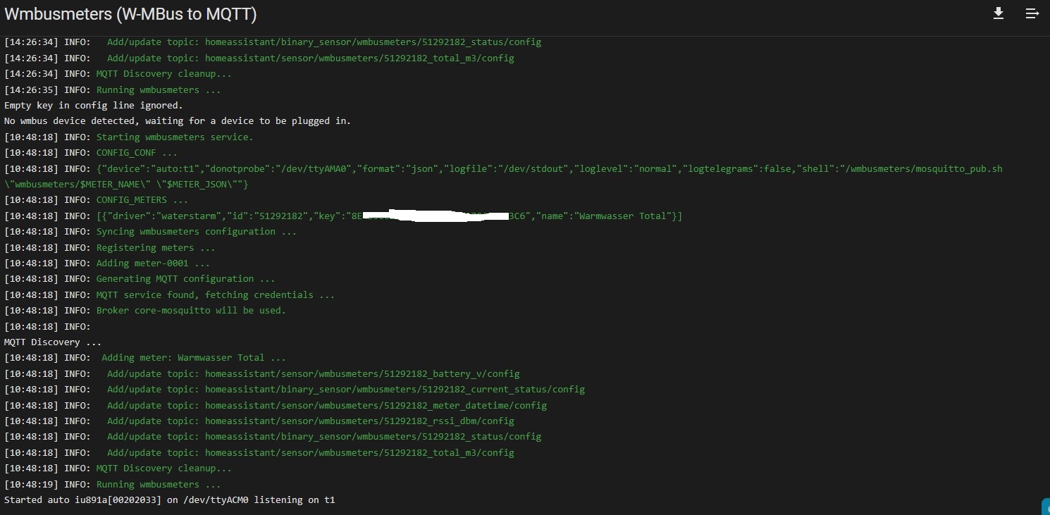 Hi, sorry for entering this topic but I also use an engelmann watermeter and an USB Stick IMSt iU891A-XL with wmbusmeters but don’t succed to receive values.