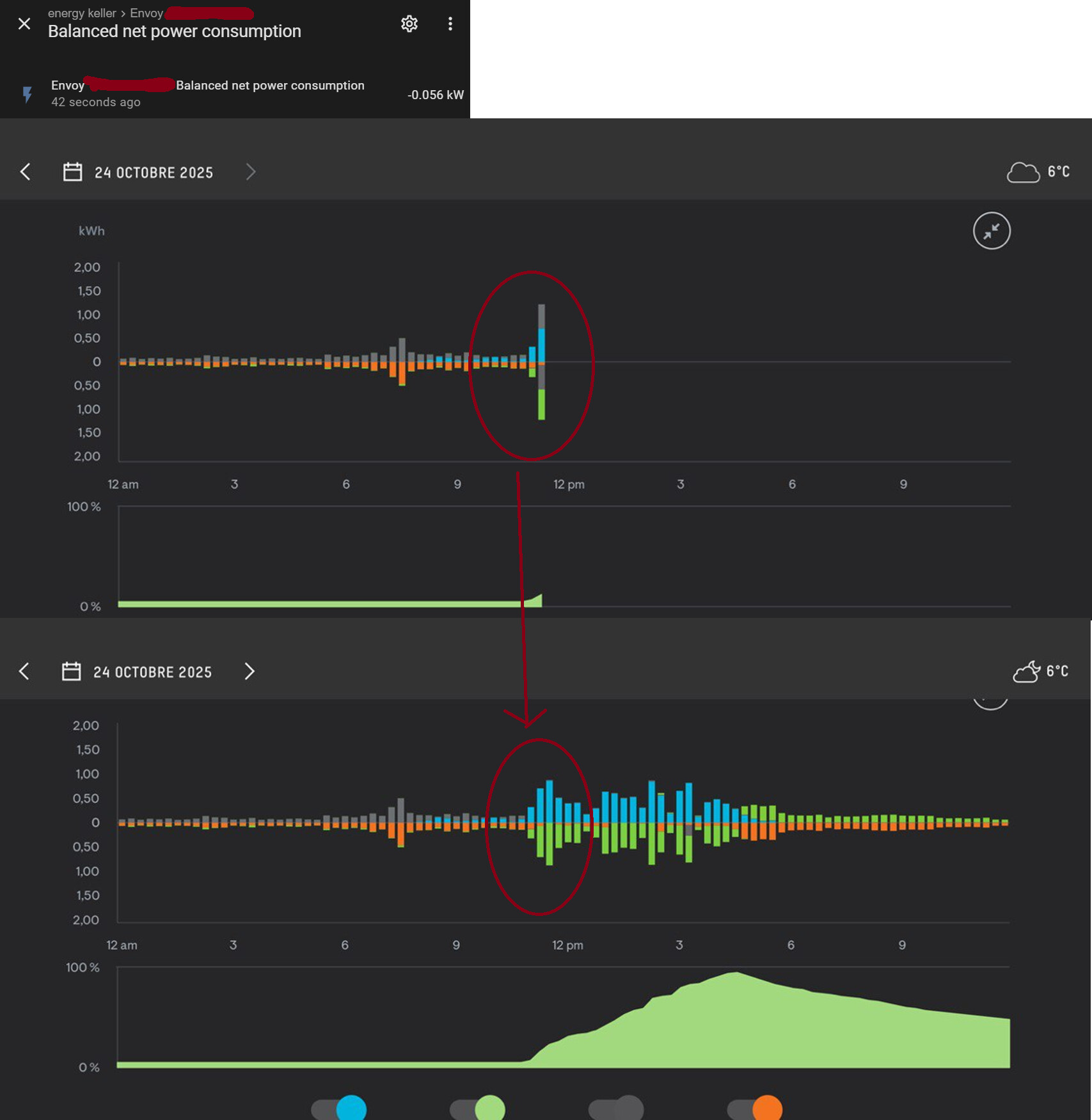 Here we can see that, for example, on 24 October, Enphase was having a lot of trouble with the measurements… Yesterday the values were wrong, and this morning I see that they have been corrected as if by magic…