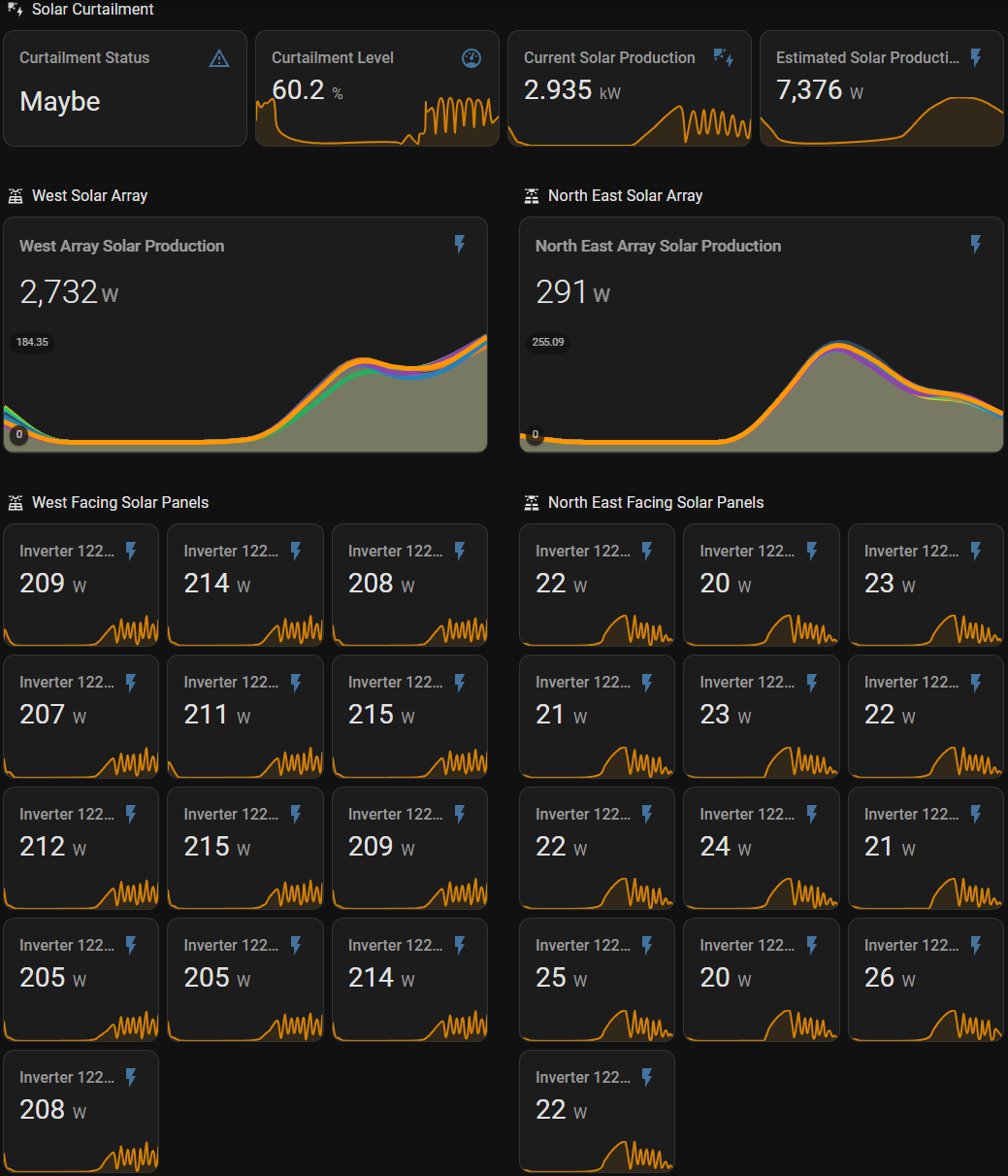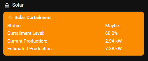 Calculates solar curtailment and displays it on dash button card as well as dedicated dashboard.