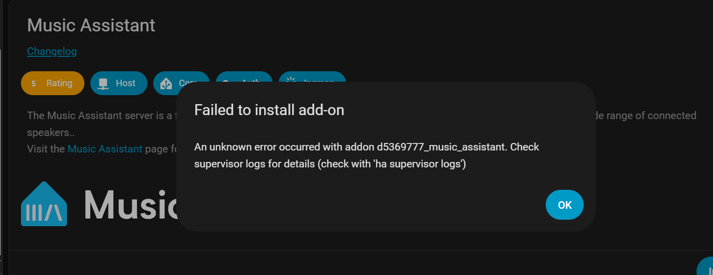 evey time i try and add a add on i get the following message still new to HA so can anyone help