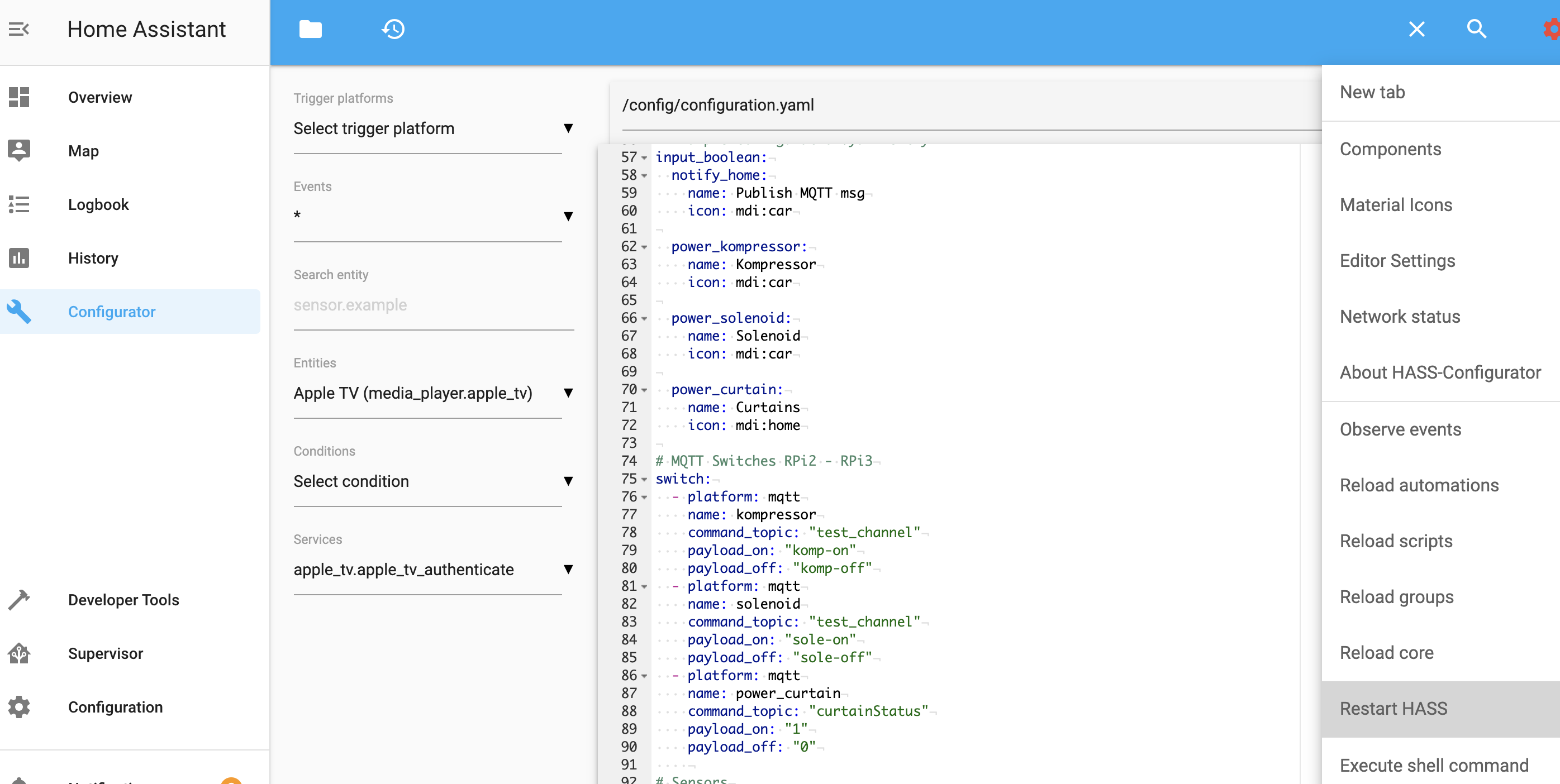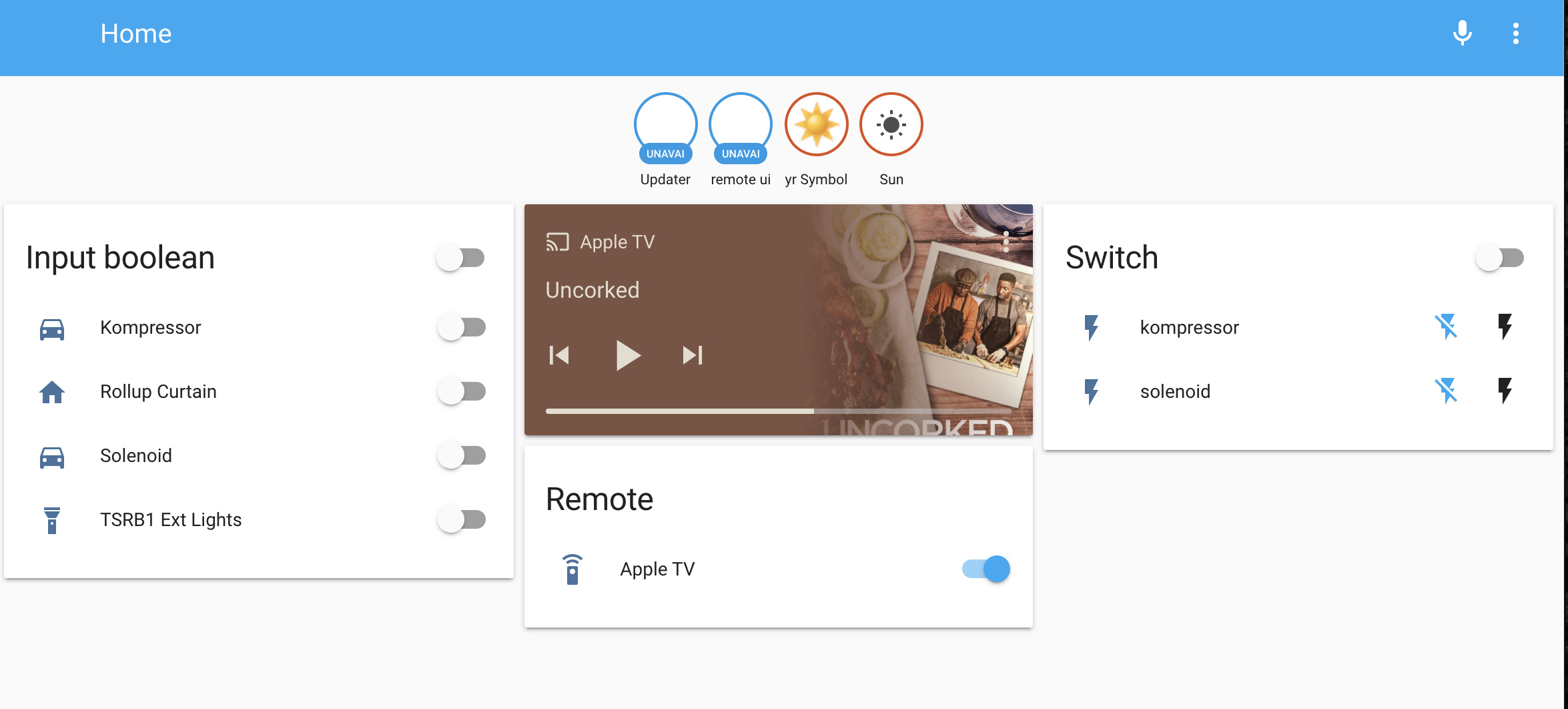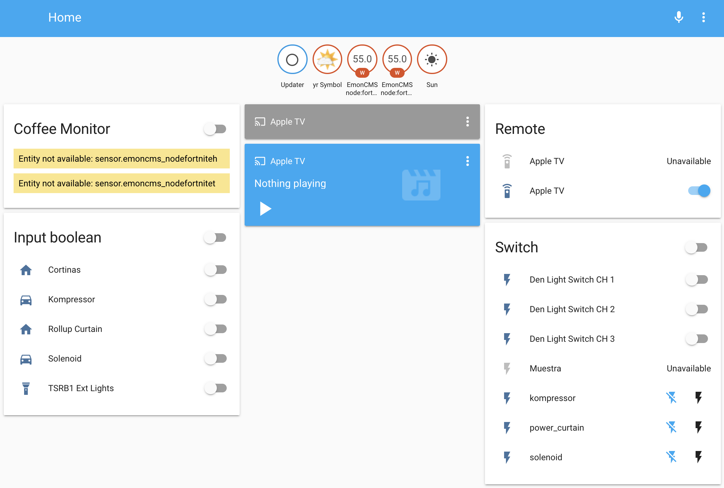 Yeah I dont understand what happened. With all the versions things have gotten messed up. When I started, automations.yaml didnt exist, at least I dont think so or maybe I didnt use it. What I know so far is that the switch doesnt show up for the curtains as it does for the solenoid and kompressor and I dont understand why?