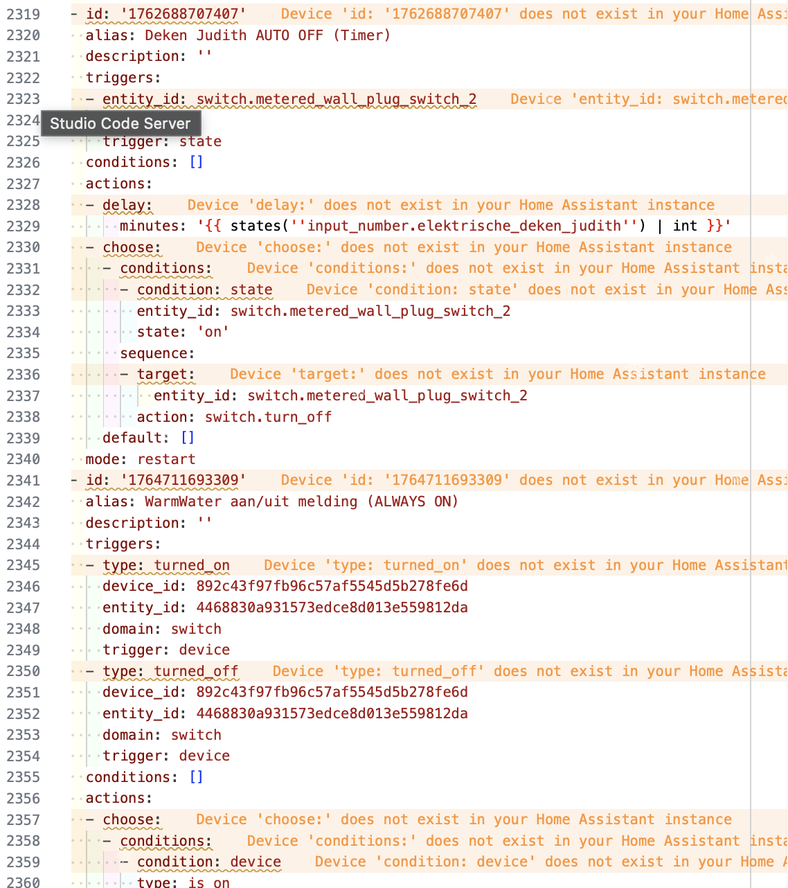 Recently there are popping up a lot of “device xxx does not exist in your Home assistant instant” errors. The automation itself is functioning wel. Does someone recognizes this also