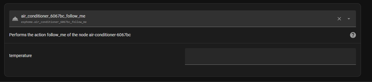 Hi, I have a SLWF-01pro (v.2.1) module inserted in my Samsung AC. It came with preloaded YAML so I need only to connect it and have it in my HA. Now it works and it have a function called “follow me”. It “tells” AC what temperature is instead to AC use it own sensor. Creator of SLWF-01pro use this ESPhome code to enable automation in HA: