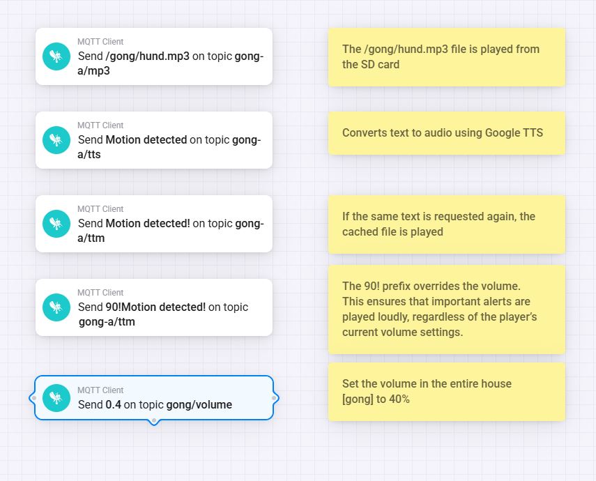 mp3,tts,ttm,volume,stop,reboot, and more - Each TTS player can subscribe to messages individually or as part of a group