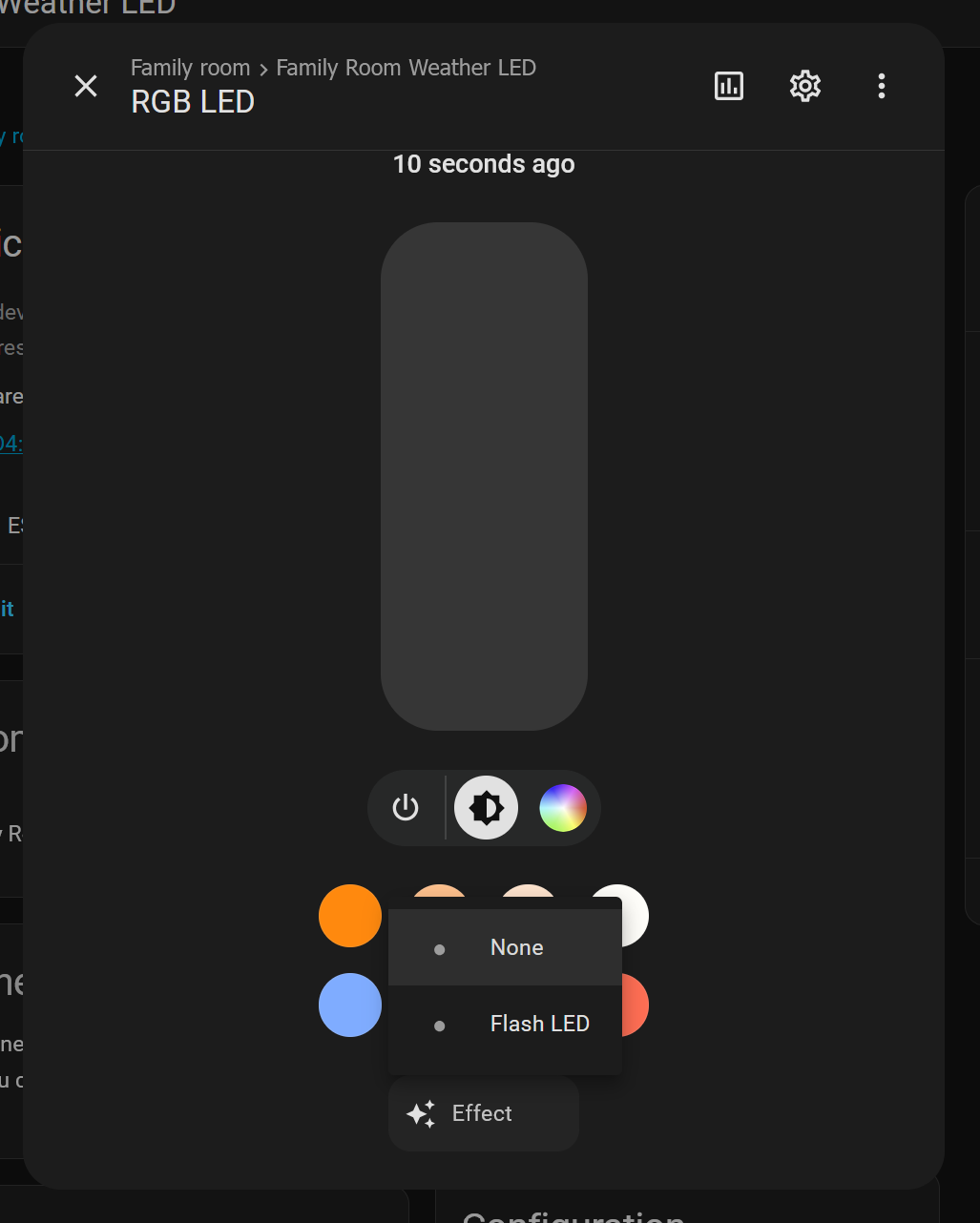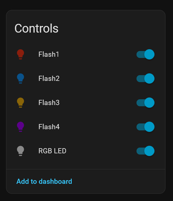 I have a working custom ESP32 based device on the RGB platform that I want to add an optional mode to flash the RGB light for special indication. Under normal circumstances, I would control the RGB light normally via either dashboard control and/or automations - when a special indication was desired, a “Flash RGB LED” switch would be turned ON and a special RGB color would be set in the ESP32 RGB device, which would then flash (~0.25Hz) this color in a sinusoidal fashion for as long as this “Flash RGB LED” switch was set. Once the “Flash RGB LED” was turned OFF, the device would return to the traditional RBG light platform.
