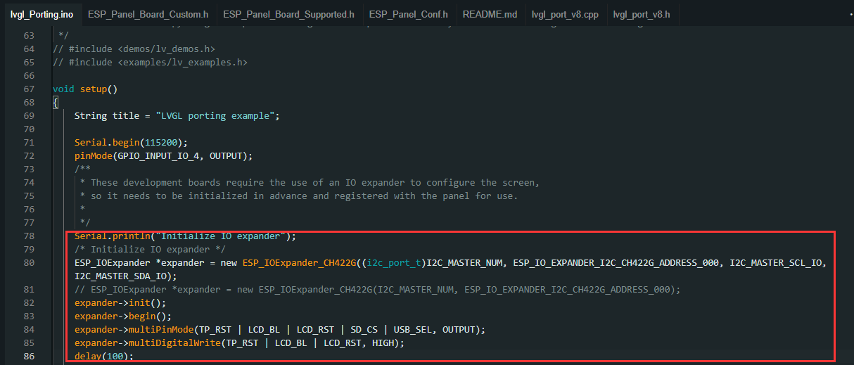 You set CH422G’s IO2 as a switch with default state to ON to turn ON the backlight. Same as “stock config”.