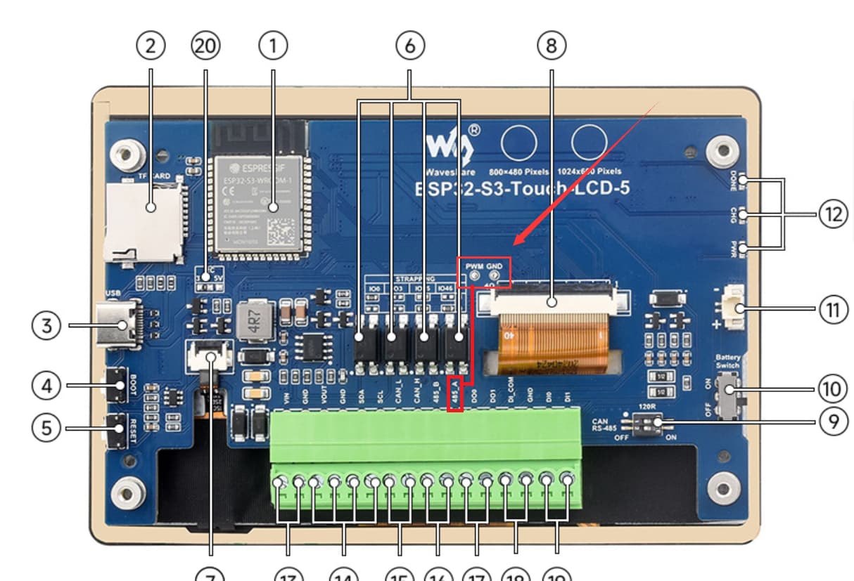 I tried toggling the backlighting on and off using only the CH422G, but without complete success. In other words, I can turn the backlighting off and on (without the ability to adjust it), but when I turn it back on, unfortunately, a ring appears around the display near the edges. This disappears after a few hours, but it becomes more pronounced and persists longer the longer the backlighting is off. I contacted support, but they said this is normal because the CH422G not only turns off the backlighting, but also removes the RGB signal, and the ringing when I turn it back on is due to that.