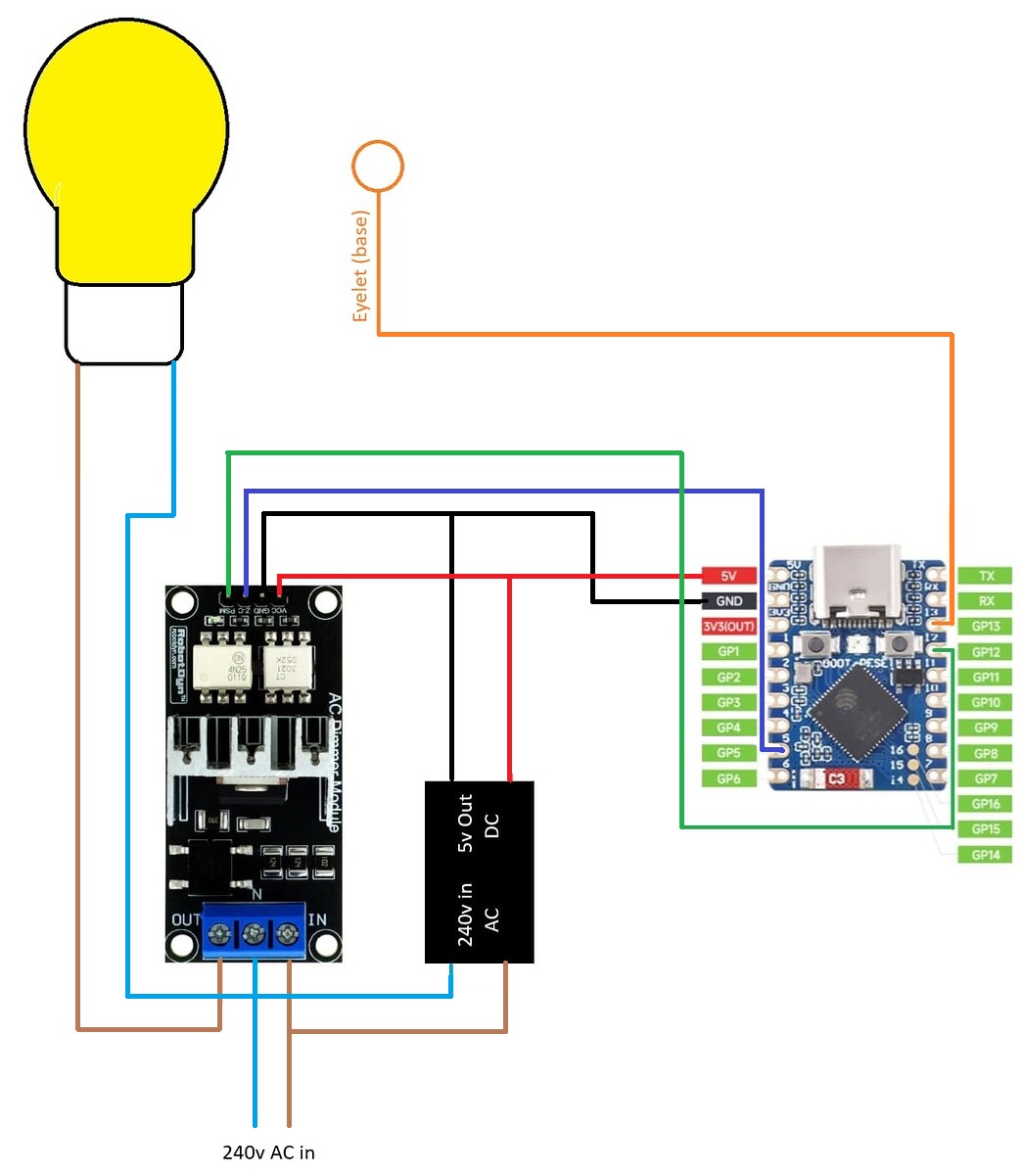 Unfortunately, dimming produces an annoying flicker, hence dimming is currently not enabled via touch in my YAML. I could just do away with the dimmer altogether, wire the bulb to mains AC and just use the ESP32 to control a smart bulb via touch.