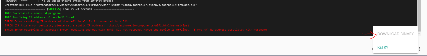 ERROR Error resolving IP address of doorbell.local. Is it connected to WiFi?