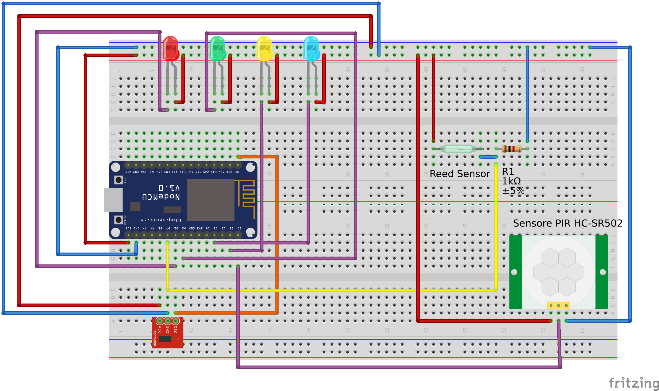 - 1x PIR sensor (motion detection)