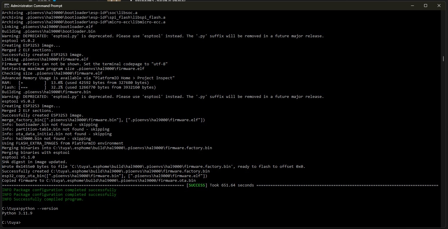 I’ve tried this on three different devices now (Windows PC, Surface, Home Assistant) and all hit the same corrupt toolchain issue. Since you got it working, there must be something different about your setup or approach.