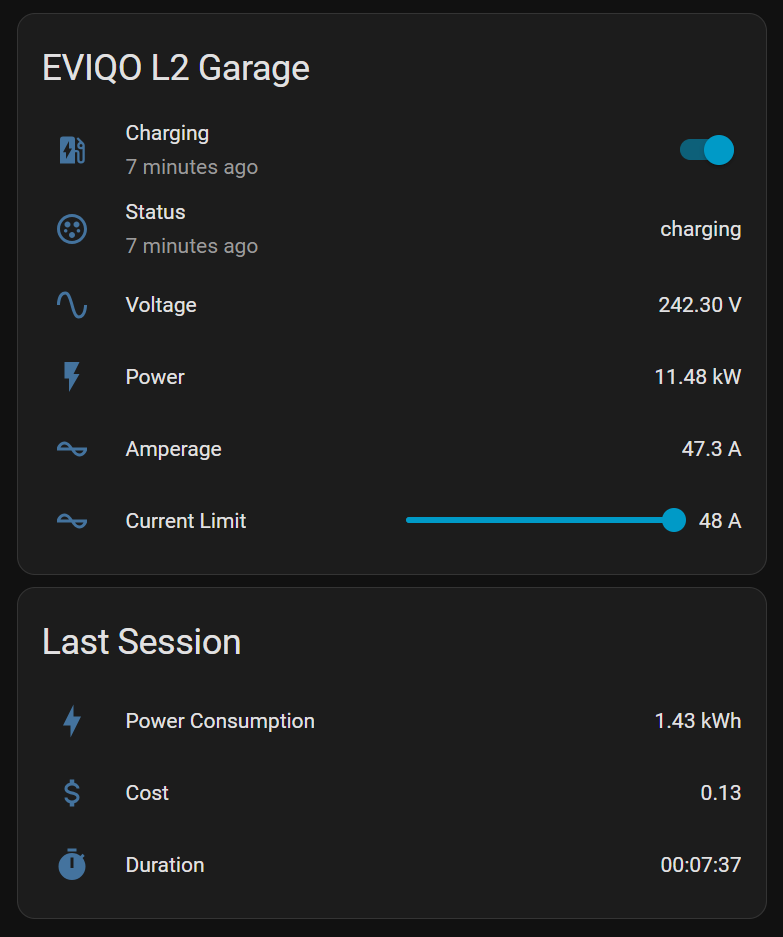 I got delayed with some personal stuff but will try to get the HACS out the door soon. I too want to get some of this date into HA so am deeply interested. I won’t support more than 1 charger for now to reduce complexity and would be surprised if the 2 people in the world with 2 Eviqo chargers also use HA, so I am not worried about it for now.