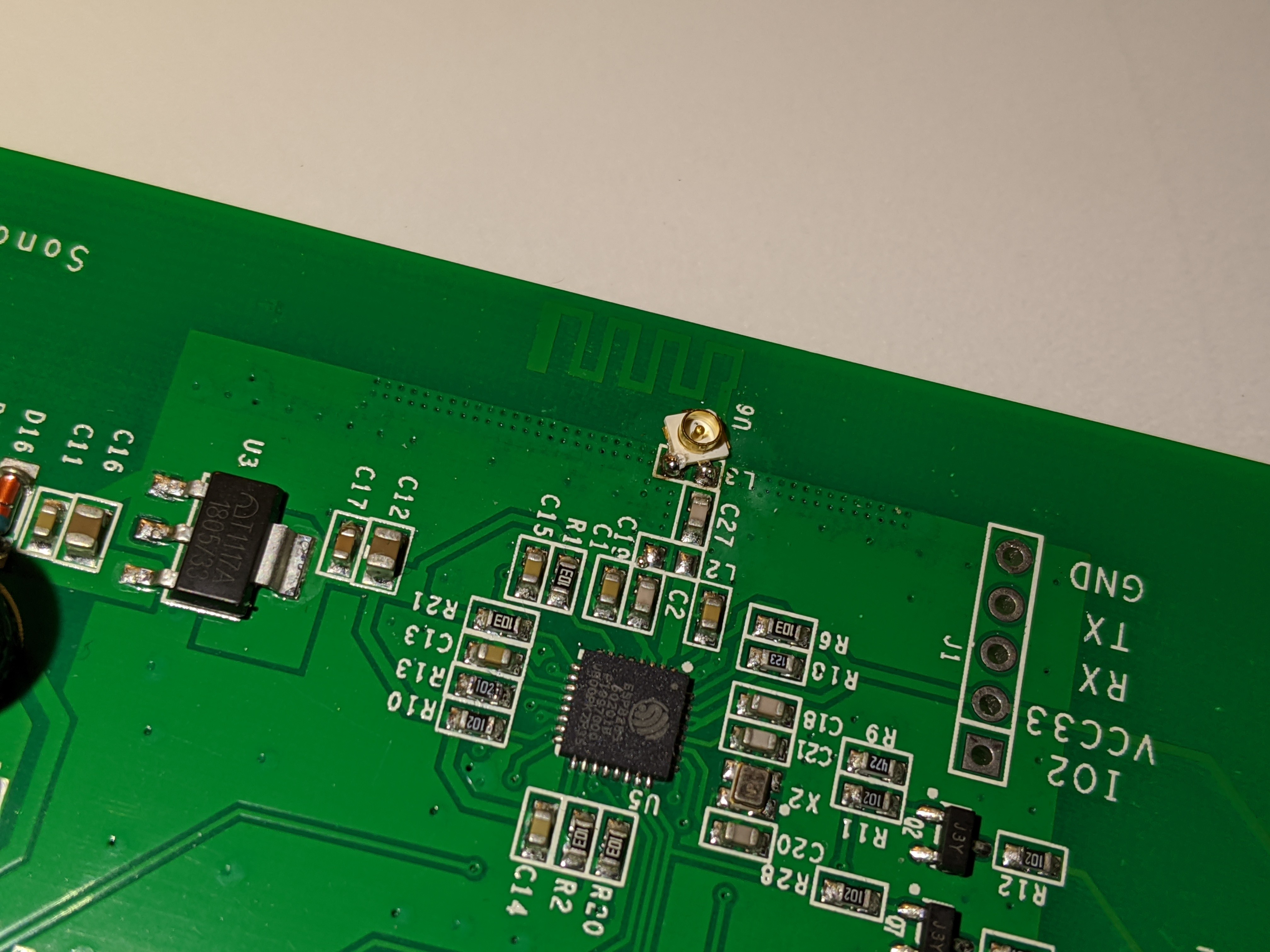 Photo below. Hopefully it’s a closer and clearer. The idea was exactly to solder the IPEX/u.FL connector to the ground and signal land - as you can see I have a REV 2 of the board without the conveniently spaced pads and the ESP is now directly mounted to the main board rather than being on the little daughter board it was on Rev 1, so I had to solder the connector on at a rather jaunty angle… but it’s definitely connected. I wish I could just find a Rev 1 to do this to as it would be much easier.