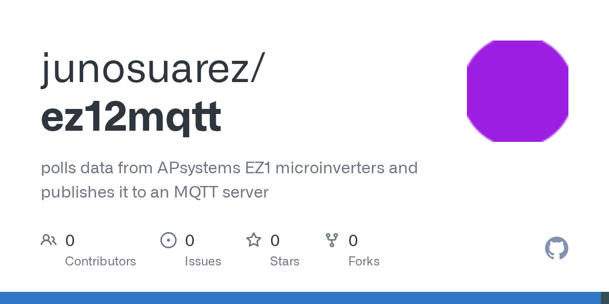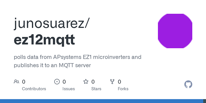 As an alternative to APsystems - Home Assistant, I wanted to connect my EZ1 inverter to HA via an mqtt broker. They both get the data from the local API, but mqtt allows more flexibility and customization. This is similar to the choice between ZHA and zigbee2mqtt. In my setup, I run this in Docker. You configure it with Docker env vars, and it publishes autodiscovery for devices to HA via MQTT - no configuration required on the HA side!