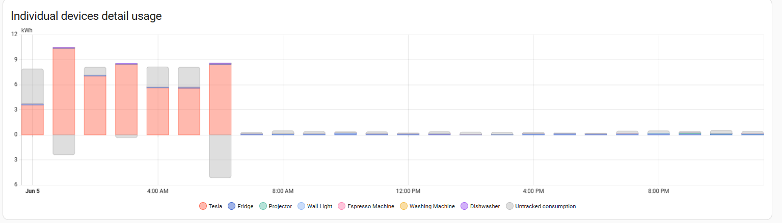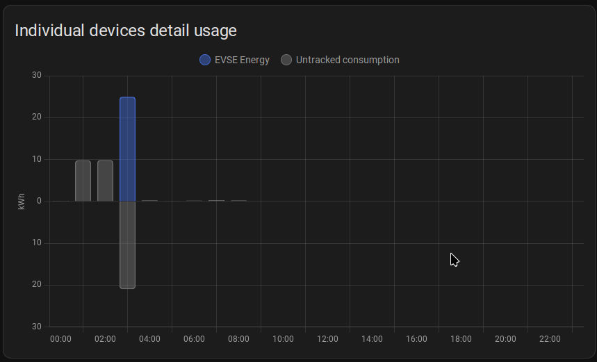 Subtracting your known device consumption from your total available energy gives (1.572 - 2.377 = -0.8kWh). That’s why there is a big negative untracked consumption there, because you’re consuming more energy than possibly exists.