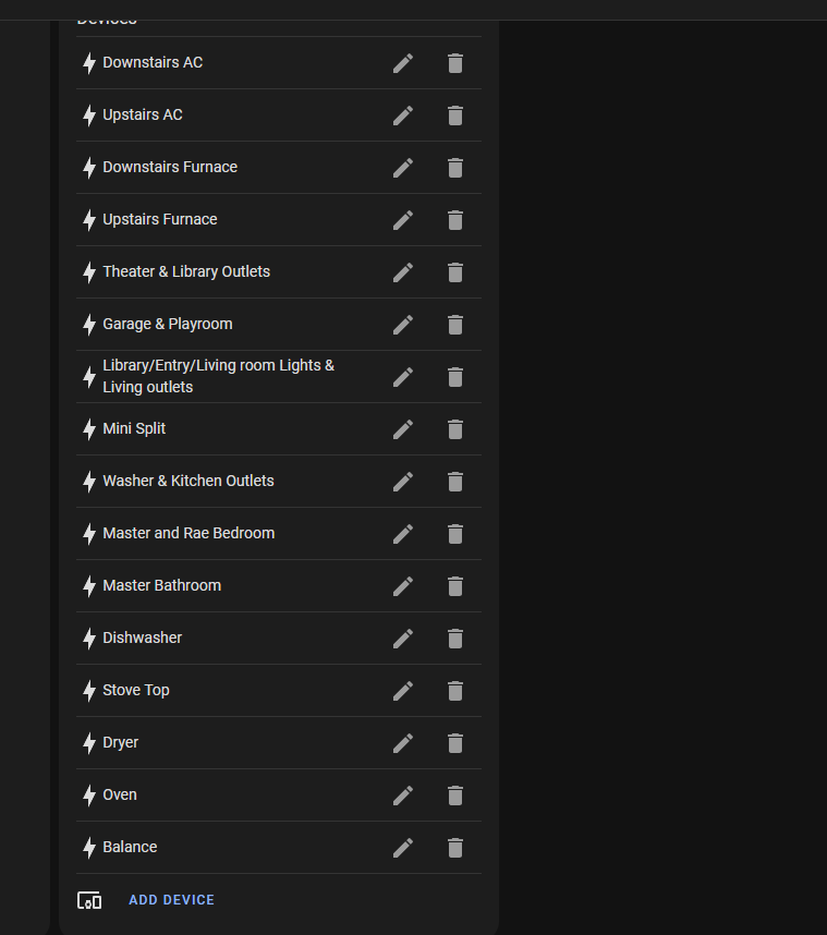 Having some issues here, and am trying to figure outo where I am going wrong…I have an Emporia Vue, so 2 big clamps attached to my mains, and a bunch attached to my others. The way the Vue works, is if its not in those it gets called “Balance”
