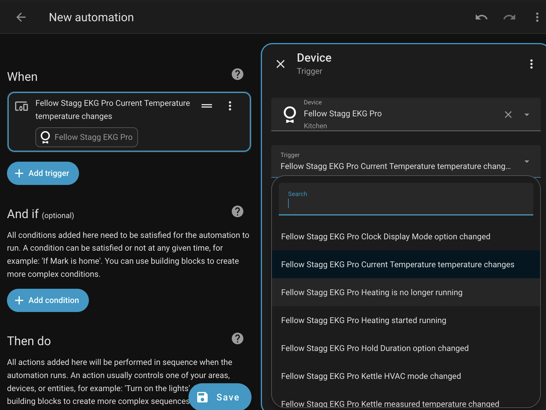 I’m trying to trigger on putting the kettle back on the base and am not seeing the options. I’m not an HA dev but I’m guessing these are supported_features. Would love to have those auto populate!