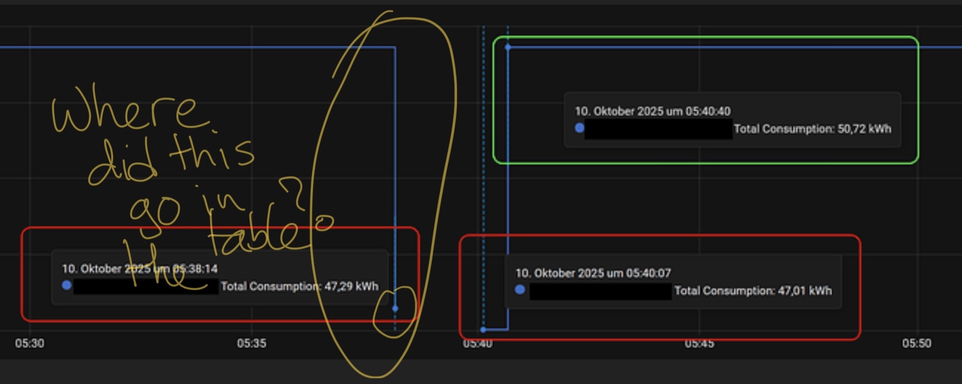 Utility meters count the difference of 4 kWh as consumption → all utility meter based entities, additional cost entities and of course the energy dashboard are broken. I need to hurry and fix that which takes at least one hour per incident