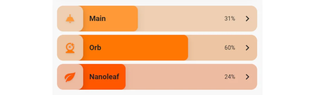 RGB and colour hue buttons with dynamic sliders can be toggled. Will only show if supported by the light.