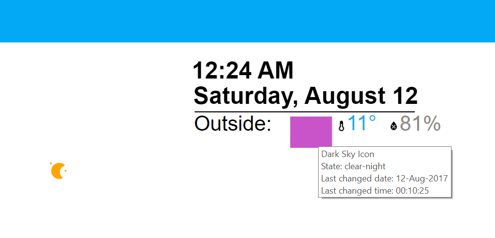 I’m trying to implement Skycons from Dark Sky (with animations, if possible) in my floorpan, but I’m having trouble finding the elements (or any elements, really) using JS. I’m guessing that has something to do with how the whole panel is loaded, any thoughts on how I can find the right element to load the skycon into?