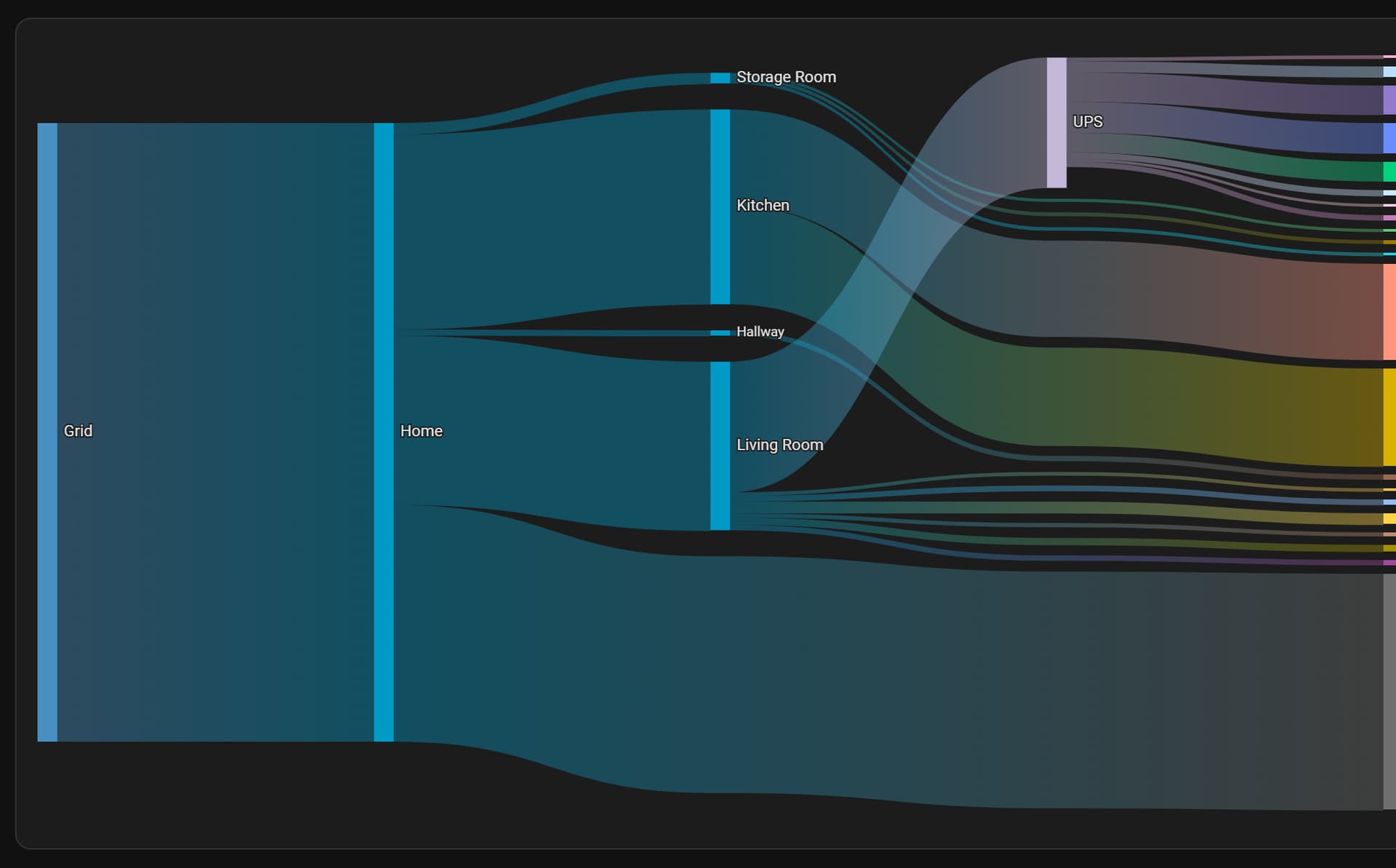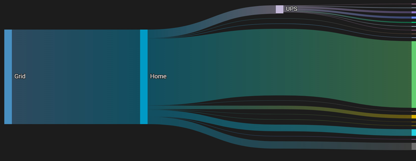Its around 50W in my case. Looks like that as total cosumption at tome of taking that screenshot was aroun 150W. Those 50W left are some small stuff like phone chargers, docking stations, monitors at idle state etc. What really bothers me is that UPS path crossing other paths. It still could be between hallway and living room. Perhaps it will be fixed one day.
