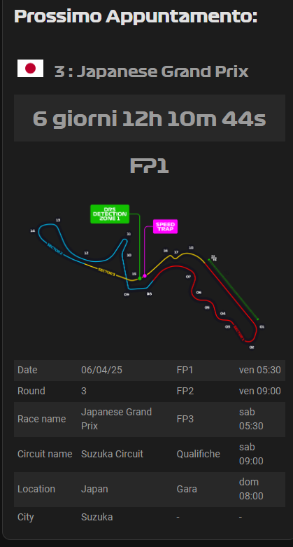 This message is just to report what I discovered, but I don’t consider it such a serious problem. It would have been if the time change occurred on the day of the grand prix. One year it happened to me and I woke up an hour late