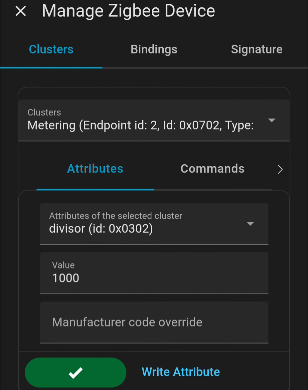 I found the cluster 0x0702, but I’m not sure which attribute that I need to change.