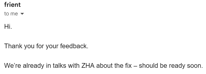 @Miranda-GB are you in communication with the Frient company representatives and clearly expained/expressed the ”give and take” concept of the partnership with an open-source project/communitycso that they understand that they should both reactivly and proactivly try to provide more assistance that benefit a better out-of-the-box experience with WWHA devices than it will if they only supply hardware and do not activly work to help improve the Zigbee device handlers for the ZHA integration to become best-in-class in user-frienlyness?