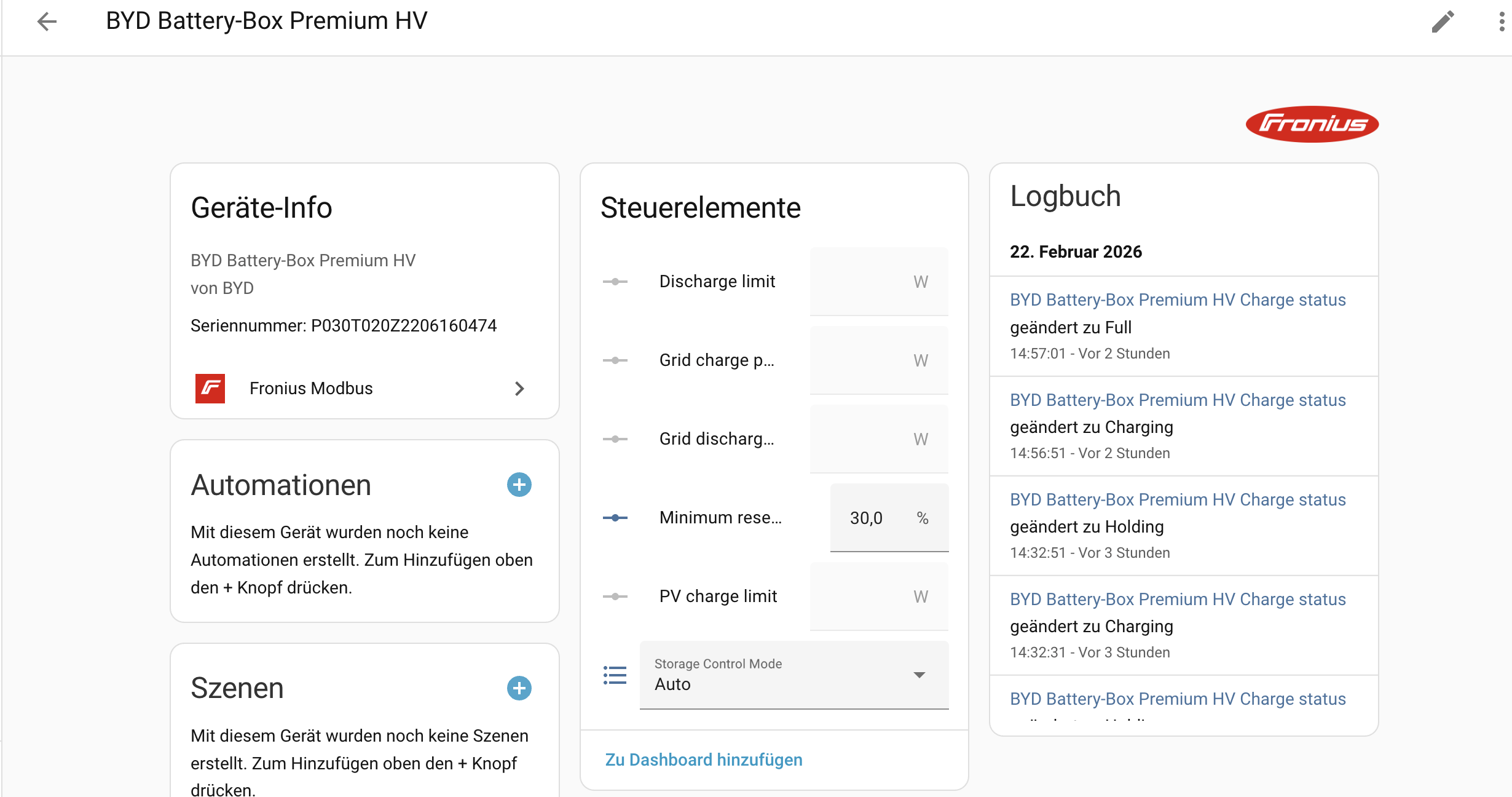 If I change the minimum resevere, the field in the fronius web interface does not change. Any idea?