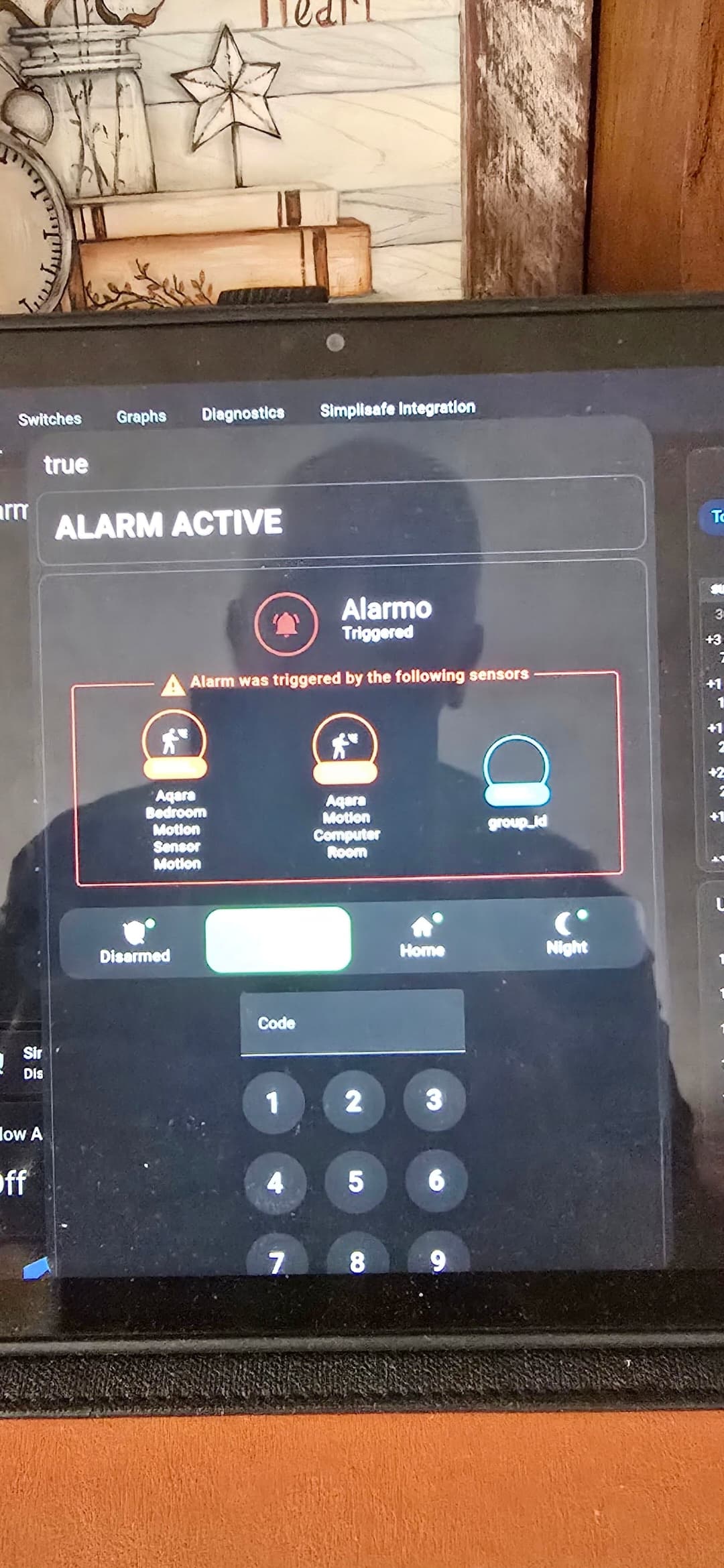 So on an alarm, a popup is displayed on the tablet, displays which sensors tripped, Alarmo keypad for disarming.