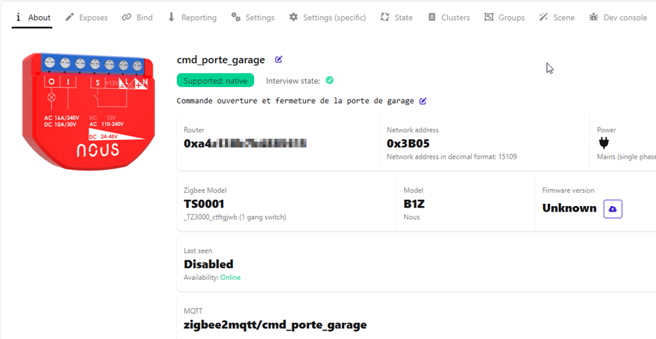 The aim of this documentation is to describe how to command an Hormann garage door by home assistant over zigbee2mqtt.