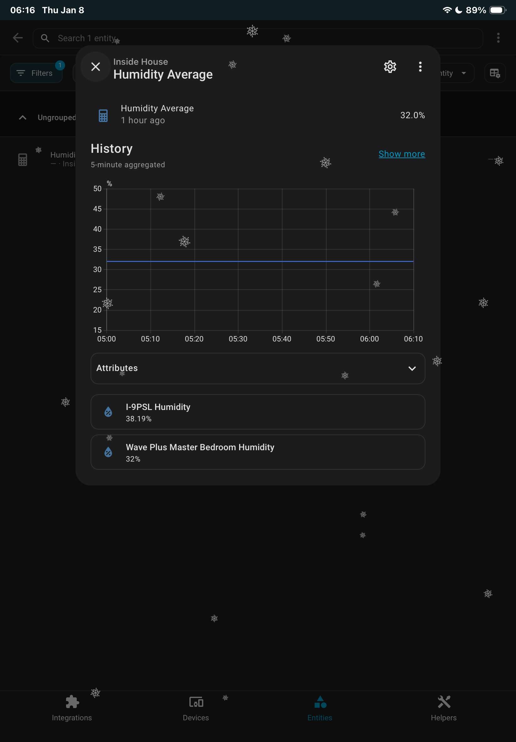 - created a helper that’s called “sensor.two_humidity_sensors” That works and I can see an average number.