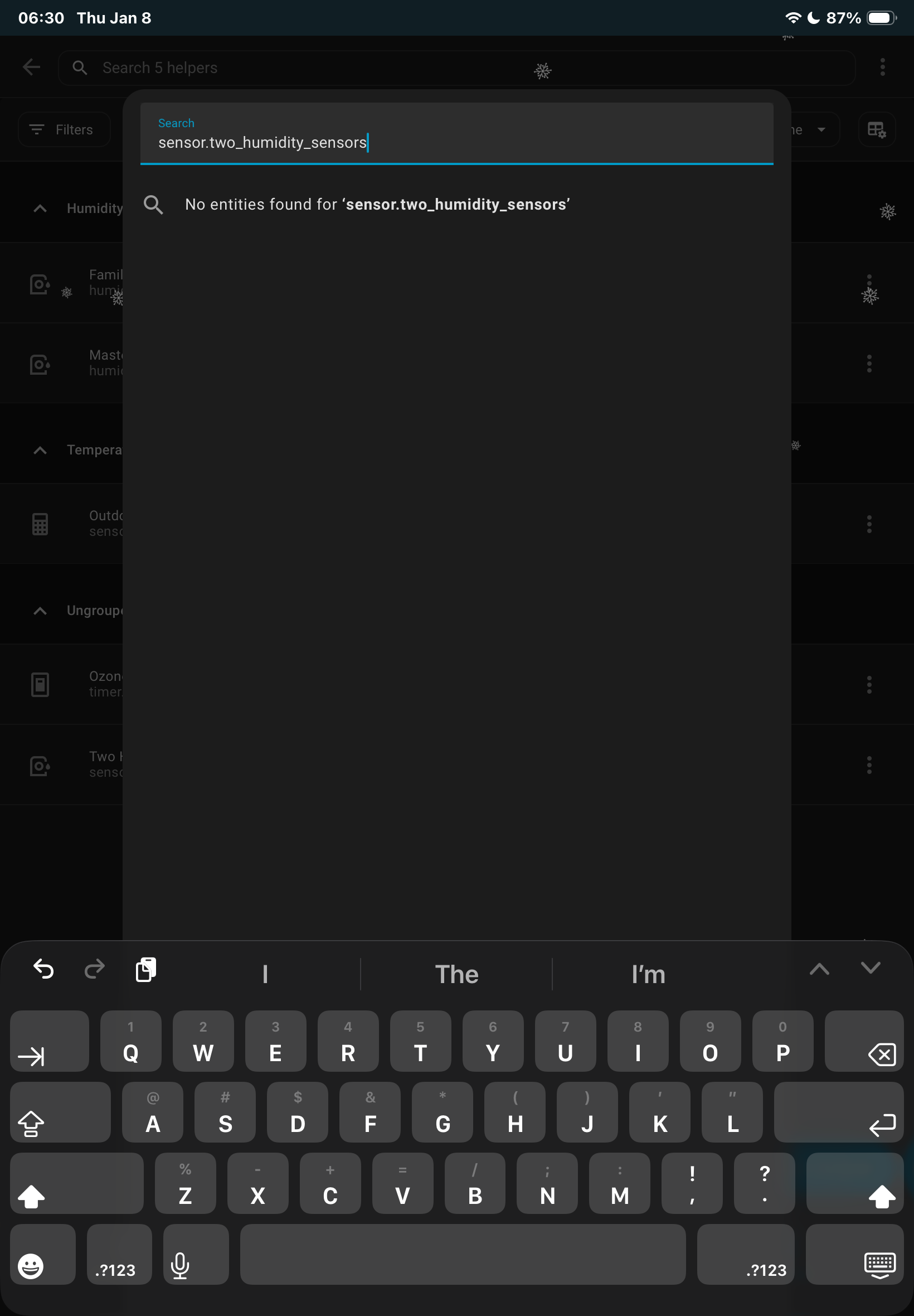 - When I try to create a generic Hygrostat I can’t see that sensor to use it.