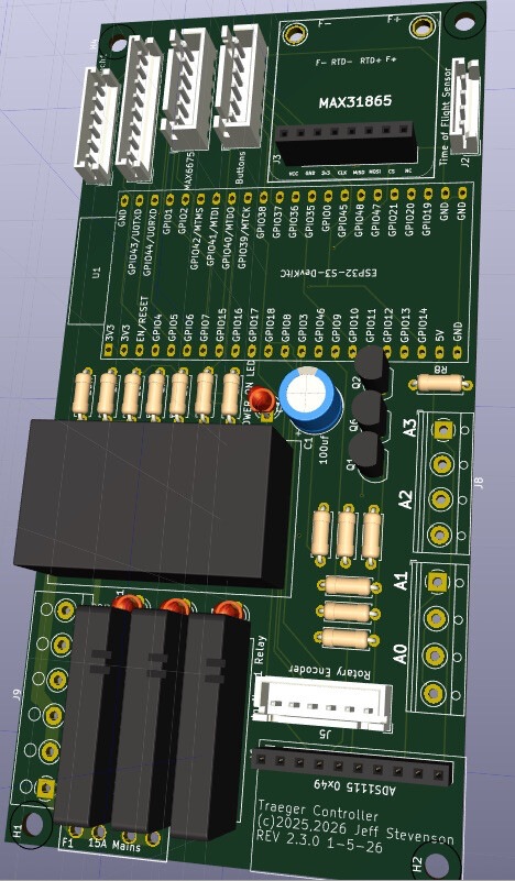 Very nice! Would you mind uploading the updated pcb files on Github? Iām located in Germany and it would probably be easier to get them made locally rather than shipping them all the way here. Also I tried searching for matching relays for the fan, hotrod etc. but didnāt find anything. Did you reuse original Traeger relays or do have you some kind of model number I can search for?