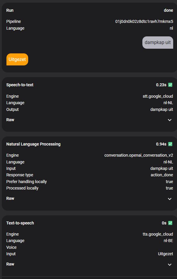 Since you mention gemini, I assume you refer to the Google Gemini integration which offers the “Google AI STT” - which also the topic starter is using. The point I made is that that is a very different beast than google Cloud - it is a totally different integration. The google cloud integration I referenced does NOT use the generative AI API for STT. It is miles faster than the gemini integration for STT to the point the STT is not even the bottneleck anymore. Google cloud stt is anywhere between 0.15-0.3s for me. But again that is NOT Gemini. Carefully look at the screenshot I posted and notice my STT integration is a different one from the topic poster.