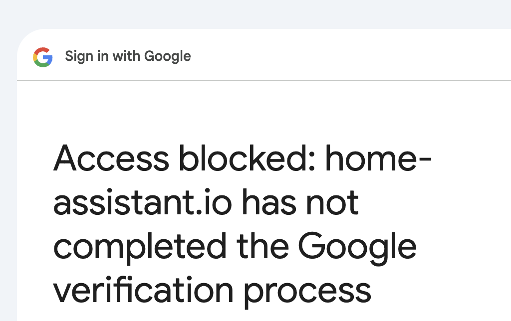 Thanks Magnus, I hadn’t realised that existed. Having been through the process several times now, I’m still getting the 'Access blocked: home-assistant.io has not completed the Google verification process. All seems very confusing. Think I’ll leave it for a day or so and come back to it!
