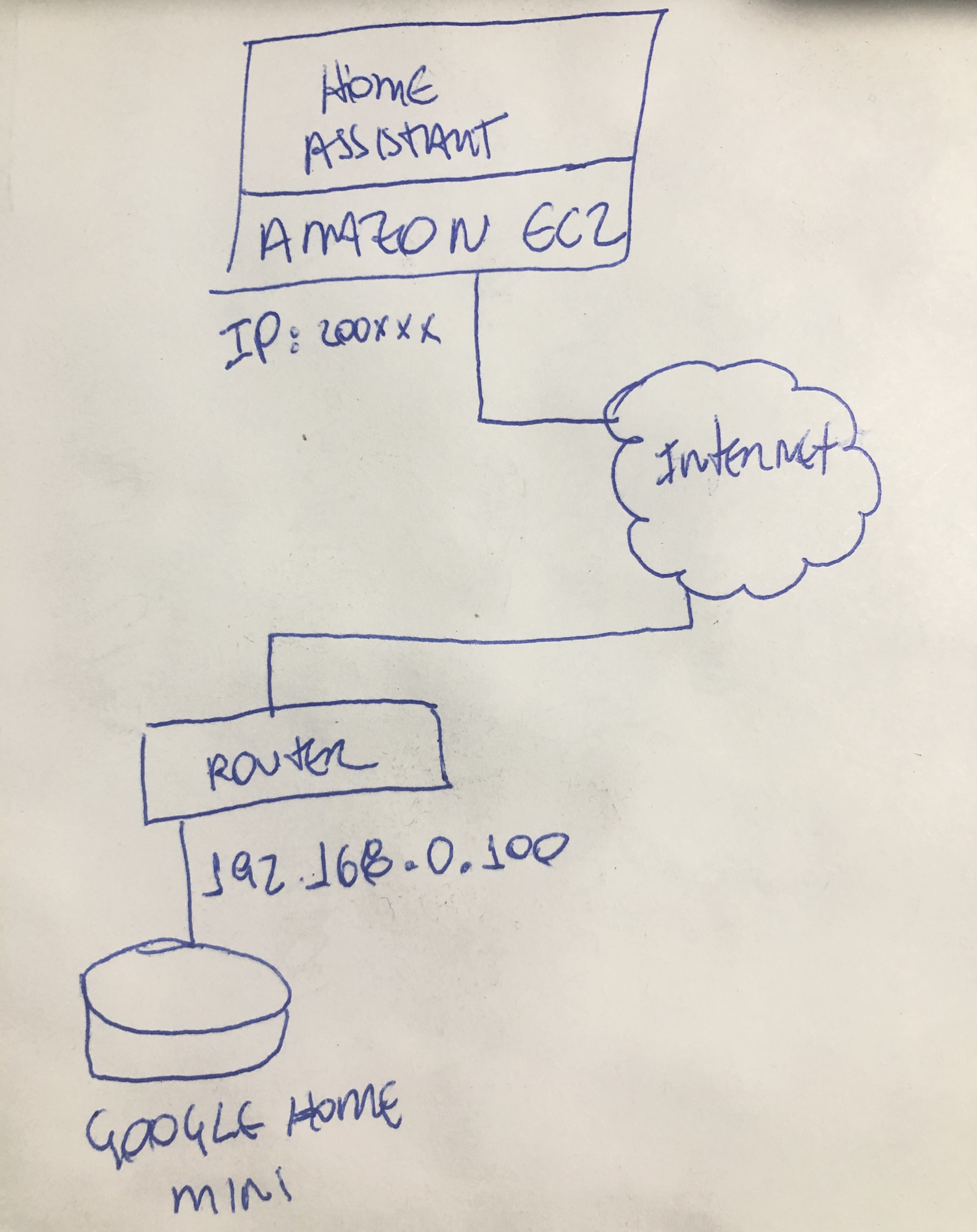 I installed Cloud Home Assistant on Amazon EC2, I want to use google home TTS, but how can I do that because I am using an external IP and my google home is on the internal network of my router with nat 192.168.0.100