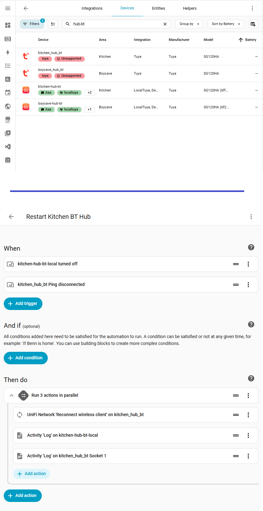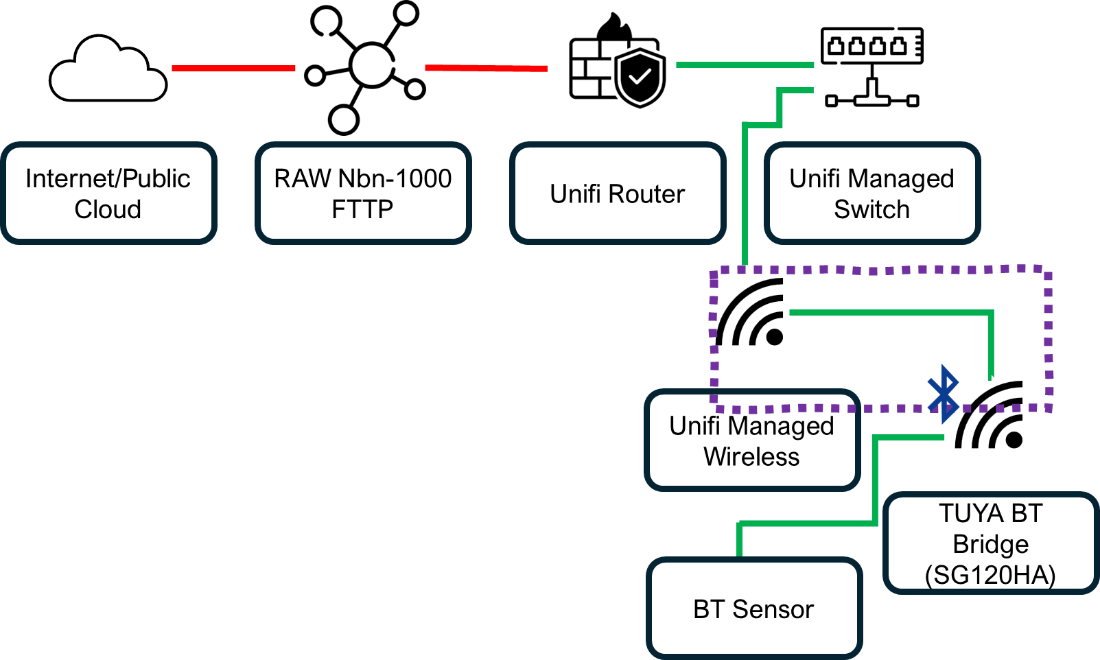 I’ve highlighted in PURPLE this issue I have identified. Which is the same issue from the original post from someone else, the only common thing is the BT Bridge, which has an inconsistent network stability