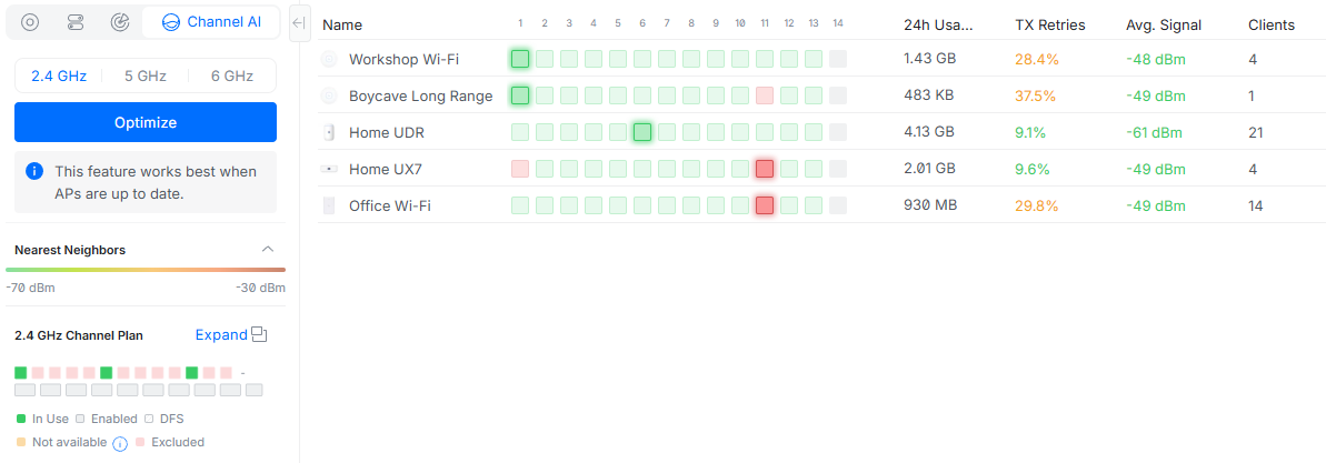 A: Not the ones I personally talk to. Given this is >7% utilisation of whatever channel I’m on, i didn’t care for the conversation. To ensure airtime fairness, i did limit all device bandwidth to >5/5Mb, as I assume most traffic is reporting back to cloud services for telemetry. Again, these 3 devices on the 2.4GHz band, there are 39 other devices on 2.4GHz without issues. Moving the probability of the issue back to bad firmware.